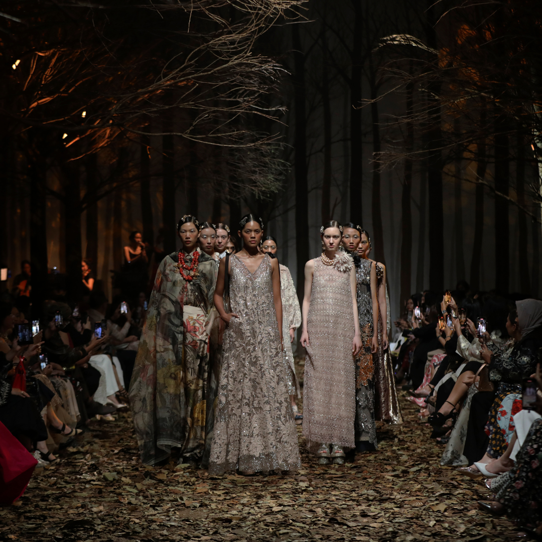 Seluruh koleksi ini dipresentasikan dalam ballroom Intercontinental Jakarta, yang disulap menjadi hutan gugur. Batang pohon-pohon tak berdaun berdiri tegak, daun-daun kering bertebaran di lantai, membuat para tamu yang hadir seakan menyaksikan peragaan busana di tengah hutan kering.