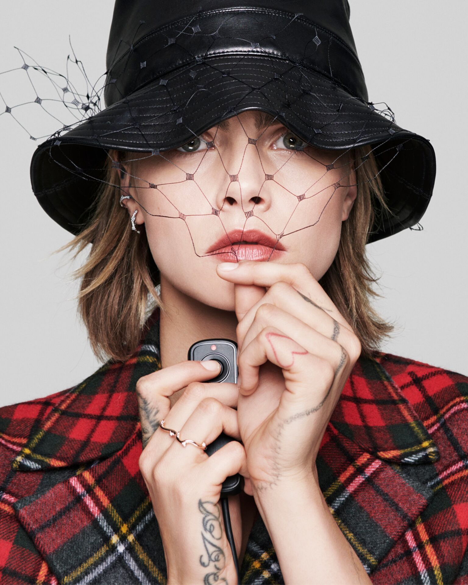 Cara terlihat mempesona dalam balutan grey pantsuit dan checked dress berwarna hijau dan hitam. Selain itu, dia juga tampil dengan dua tampilan tartan yang berupa dress dan blazer. Tampilannya dilengkapi dengan veiled bucket hat yang menjadi key accessory dari koleksi Dior Autumn Winter 2019 tersebut.