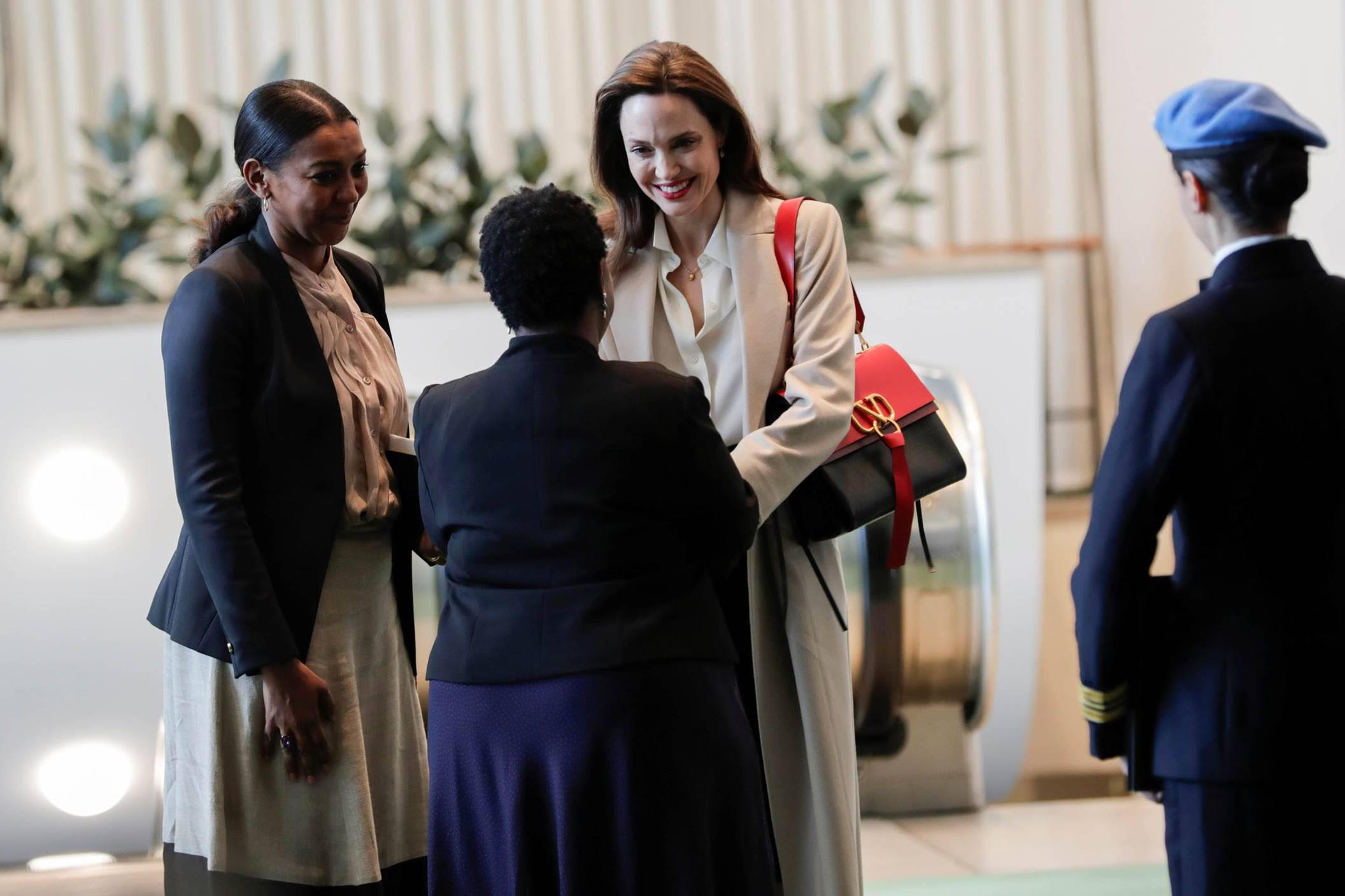 Ternyata tak hanya saya yang kagum akan Valentino Garavani VRING Bag, selebritas papan atas Hollywood, layaknya Angelina Jolie pun mengenakan tas berwarna hitam tersebut, dalam kesempatan bertemu dengan menteri Amerika Serikat di United Nations Headquarter, New York. Angelina Jolie memadupadankannya dengan kemeja putih dan mantel krem. Ia terlihat berbinar dengan pop of color dari tas Valentino Garavani VRING Bag, setuju?