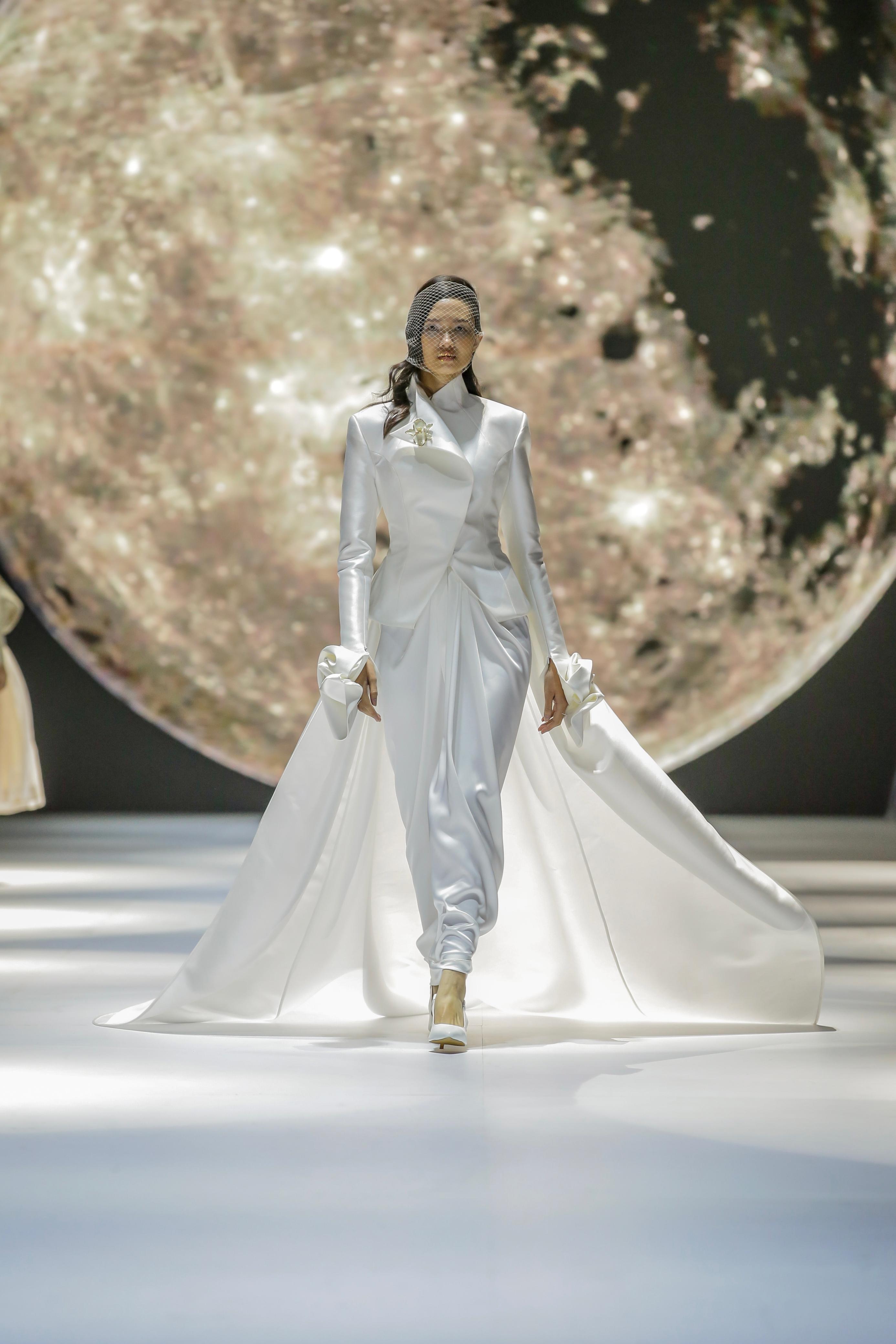 ‘Moonchild’ menjadi tajuk yang diangkat untuk presentasi kali ini yang menampilkan 12 set busana untuk koleksi deluxe. Dalam rangkaian palet yang terbagi dalam warna hitam, emas muda, merah muda pudar dan putih menjadi perwakilan visualisasi sang desainer dalam menceritakan keterlibatan bulan dalam mempengaruhi gravitasi dan pasang surut air laut di bumi, yang disisi lain turut pula mempengaruhi emosi dan prilaku manusia.