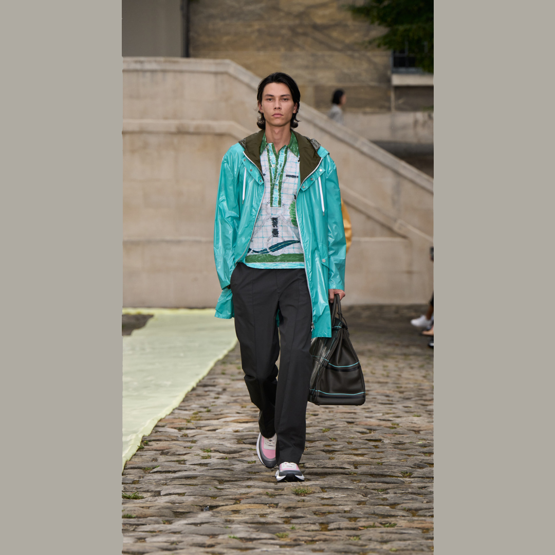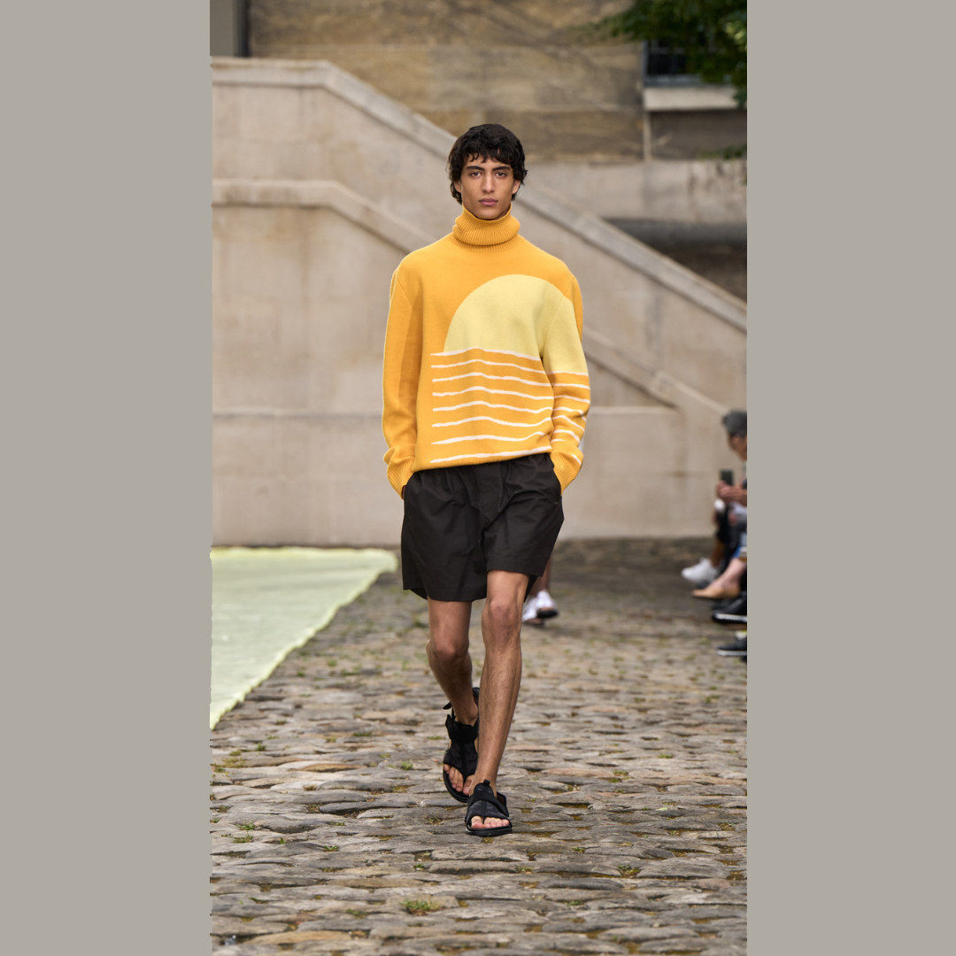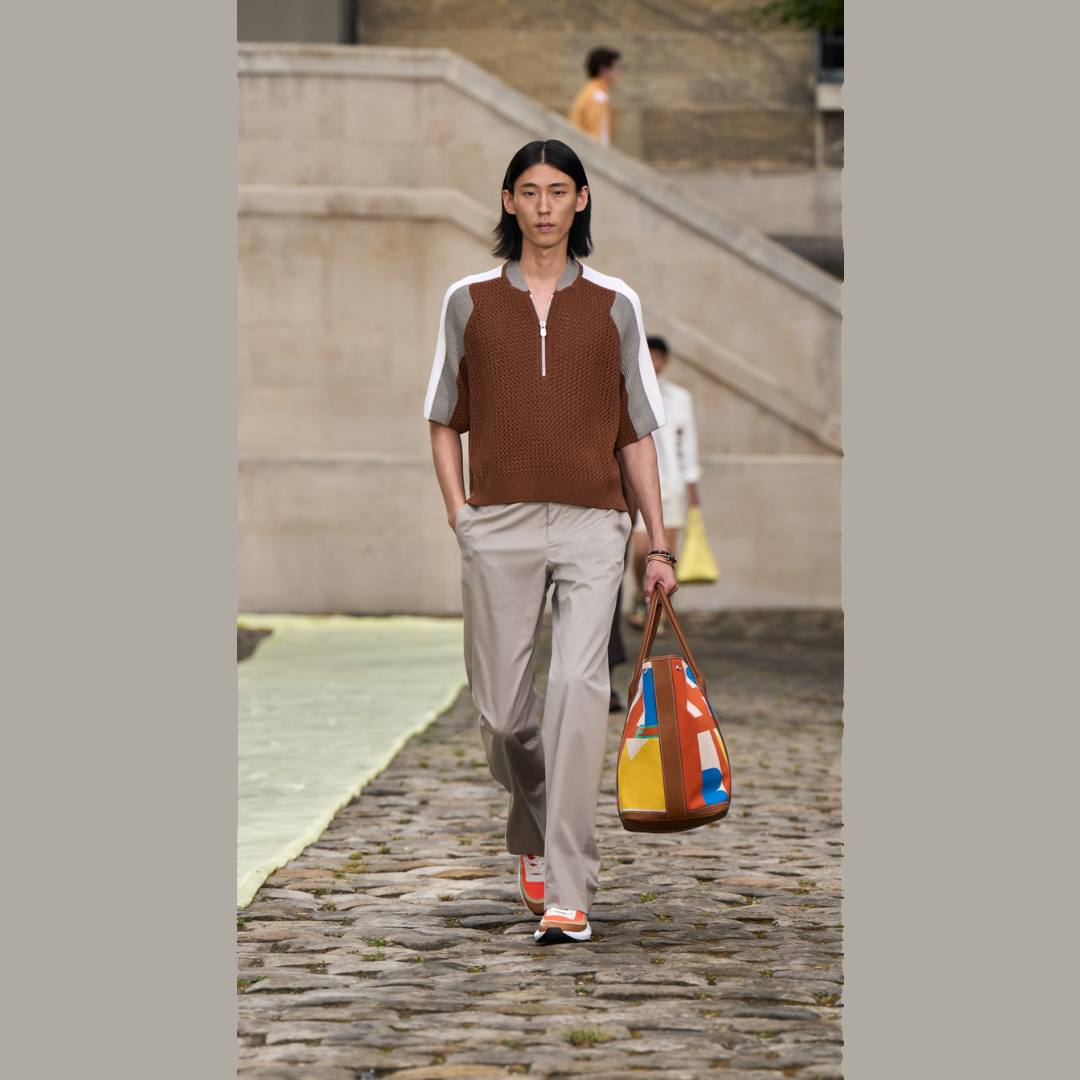 Hermès menggelar runway show untuk koleksi men’s summer 2023 pada Sabtu 25 Juni 2022 di Manufacture Des Gobelins, Paris. Membawakan warna-warna yang cerah seperti lilac, lagoon, lemonade, khaki, brown, stone, black dan semangat menjelang musim panas, penampilan dari setiap model seakan siap berlibur.