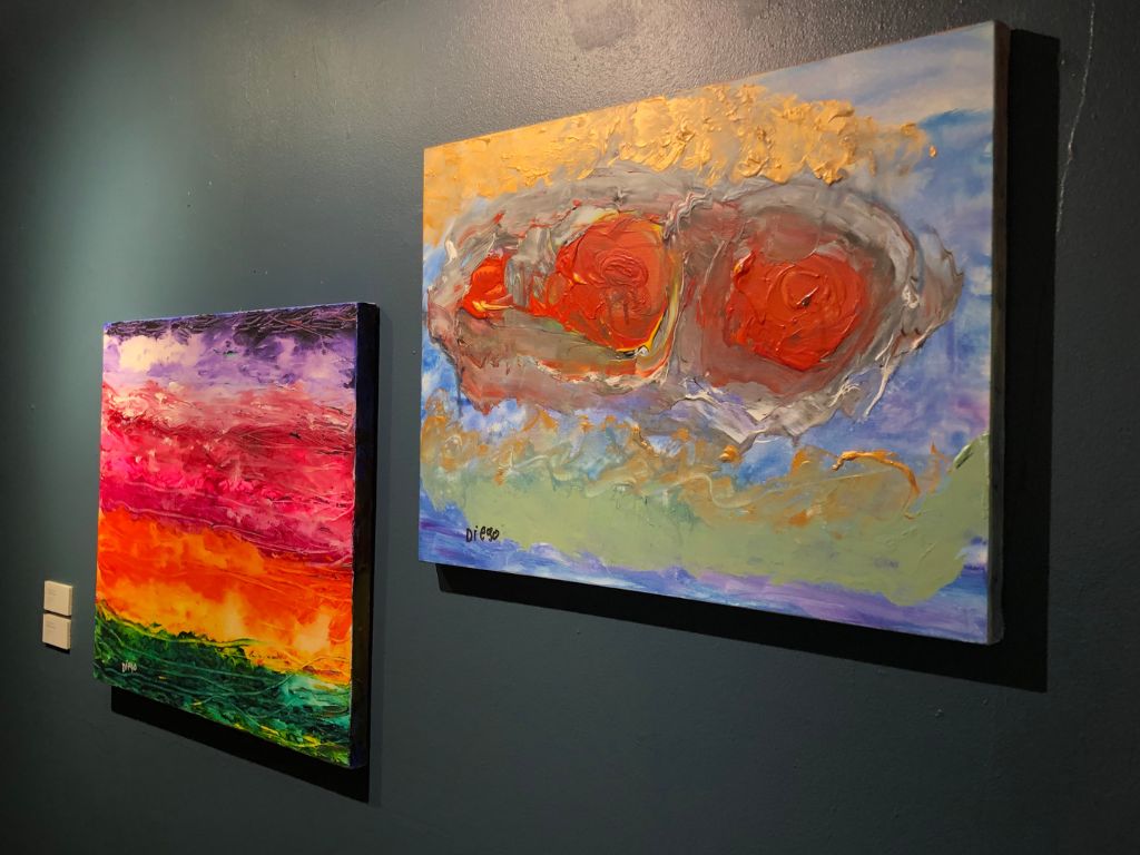 Sebanyak 16 karya, dibawa dalam pameran ini. Menggambarkan tentang kehidupan manusia yang penuh dengan warna dan alam estetis. Lukisan abstrak yang menjadi ciri khas Diego diciptakan menggunakan warna-warna yang menonjol dengan menggunakan pisau dan kuas palet klasik.