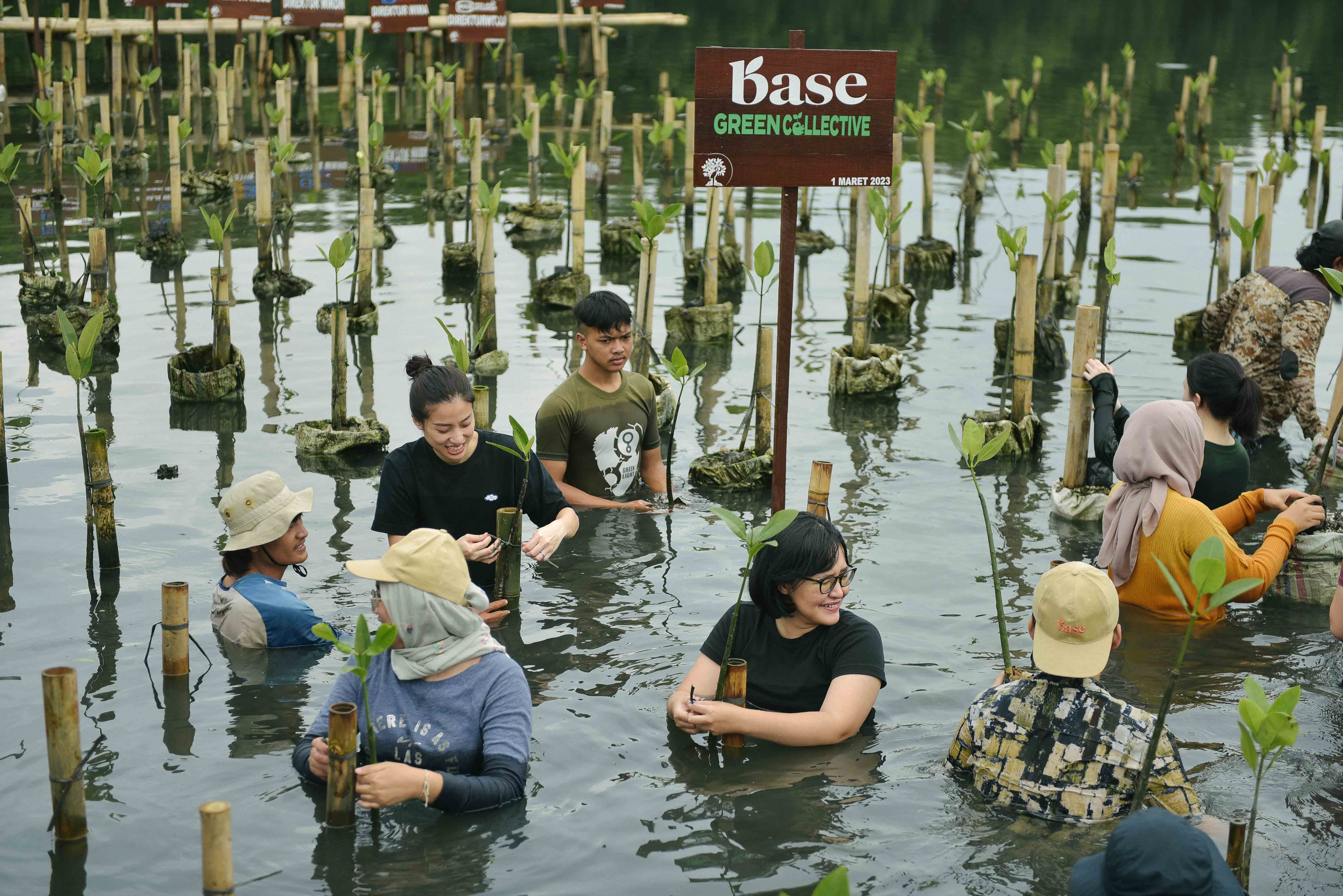 Rabu, 1 Maret 2023, BASE menggandeng JEJAKIN dalam memperkenalkan Green Collective untuk meminimalisir emisi karbon. BASE mengadakan penanaman 625 pohon nangka dan 1.667 pohon mangrove di Taman Wisata Alam Mangrove, Angke Kapuk dengan estimasi cadangan karbon sebesar 1.073 Ton. Ratih Permata Sari dan Yuami Fauziah Sugiharta turut hadir langsung dan menyaksikan penanaman pohon mangrove oleh tim BASE dan tim JEJAKIN.