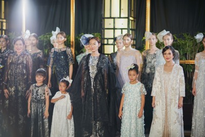 Seorang perempuan muda berparas cantik muncul di akhir pagelaran, perancang busana bernam...