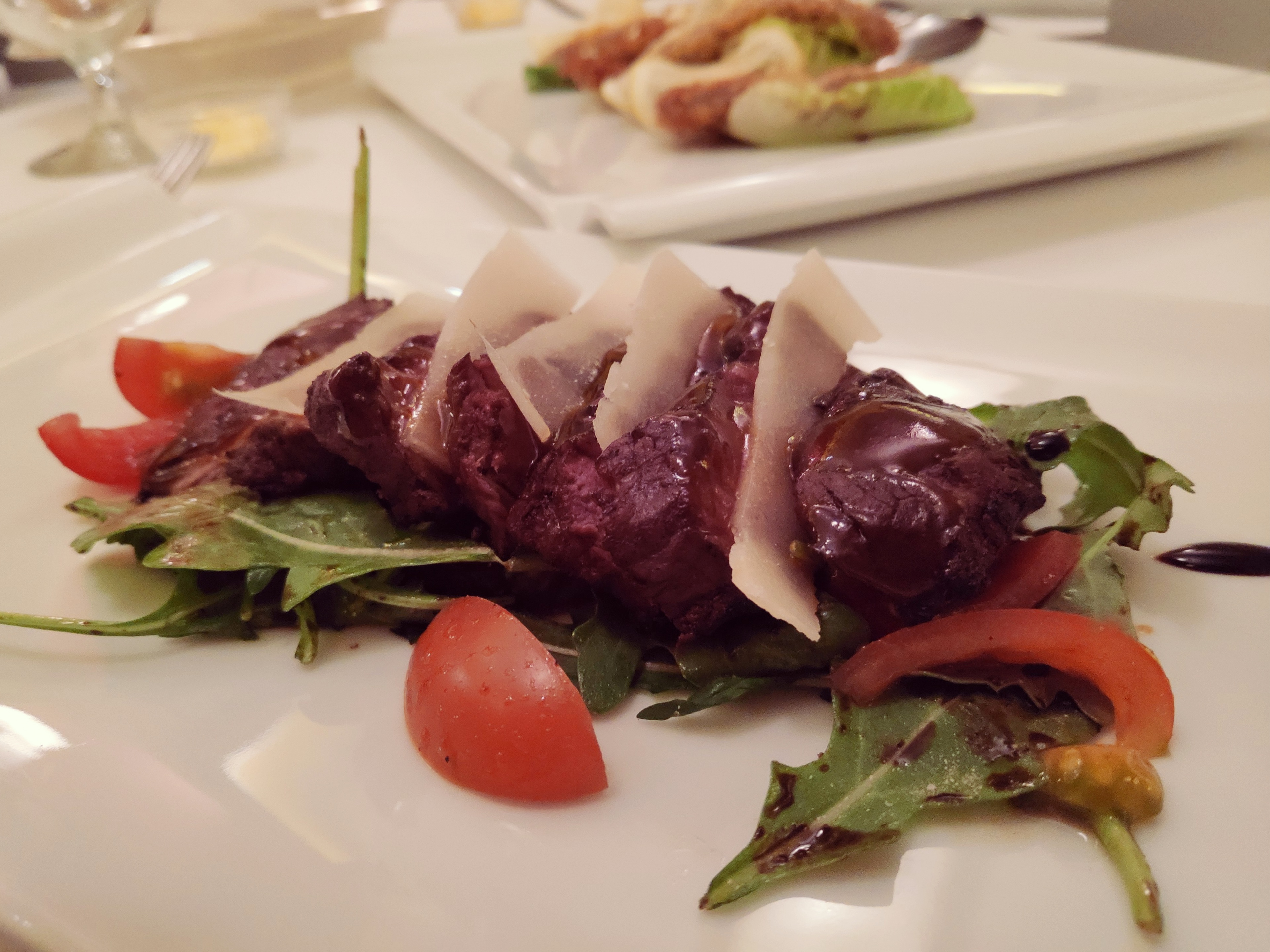 Rump steak tagliata style, rucola and parmesan