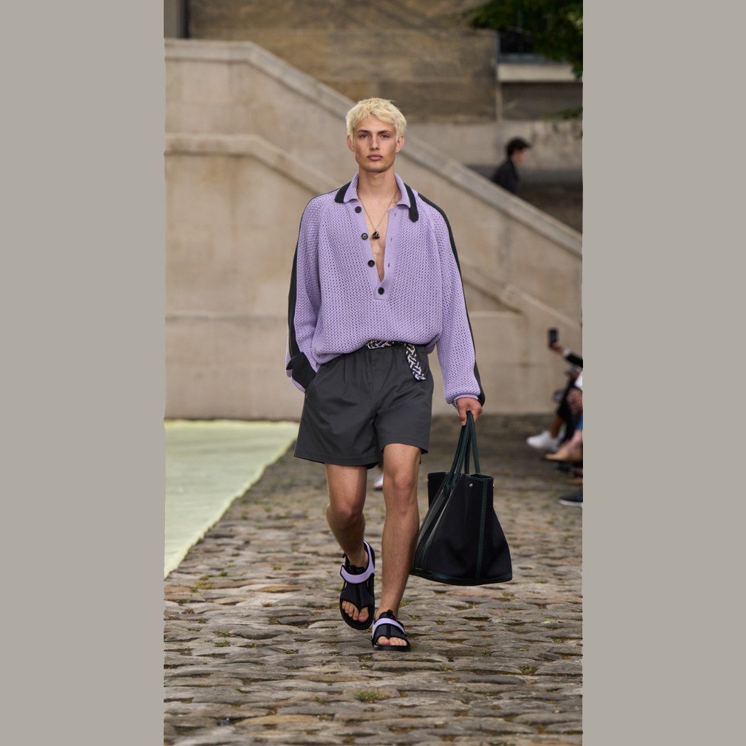 Hermès menggelar runway show untuk koleksi men’s summer 2023 pada Sabtu 25 Juni 2022 di Manufacture Des Gobelins, Paris. Membawakan warna-warna yang cerah seperti lilac, lagoon, lemonade, khaki, brown, stone, black dan semangat menjelang musim panas, penampilan dari setiap model seakan siap berlibur.