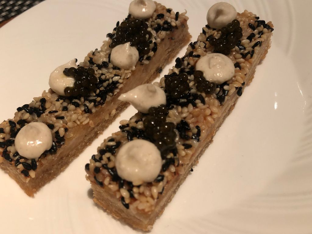 Hokkaido King Crab menurut saya juga tidak kalah enak sebagai makanan pembuka. Chef Adhitia menggunakan kepiting raja yang lembut dan gurih, dibalur dengan mentega dan bawang putih, truffle egg tartar dan disajikan diatas kembang goyang crackers yang membuat sajian ini renyah.