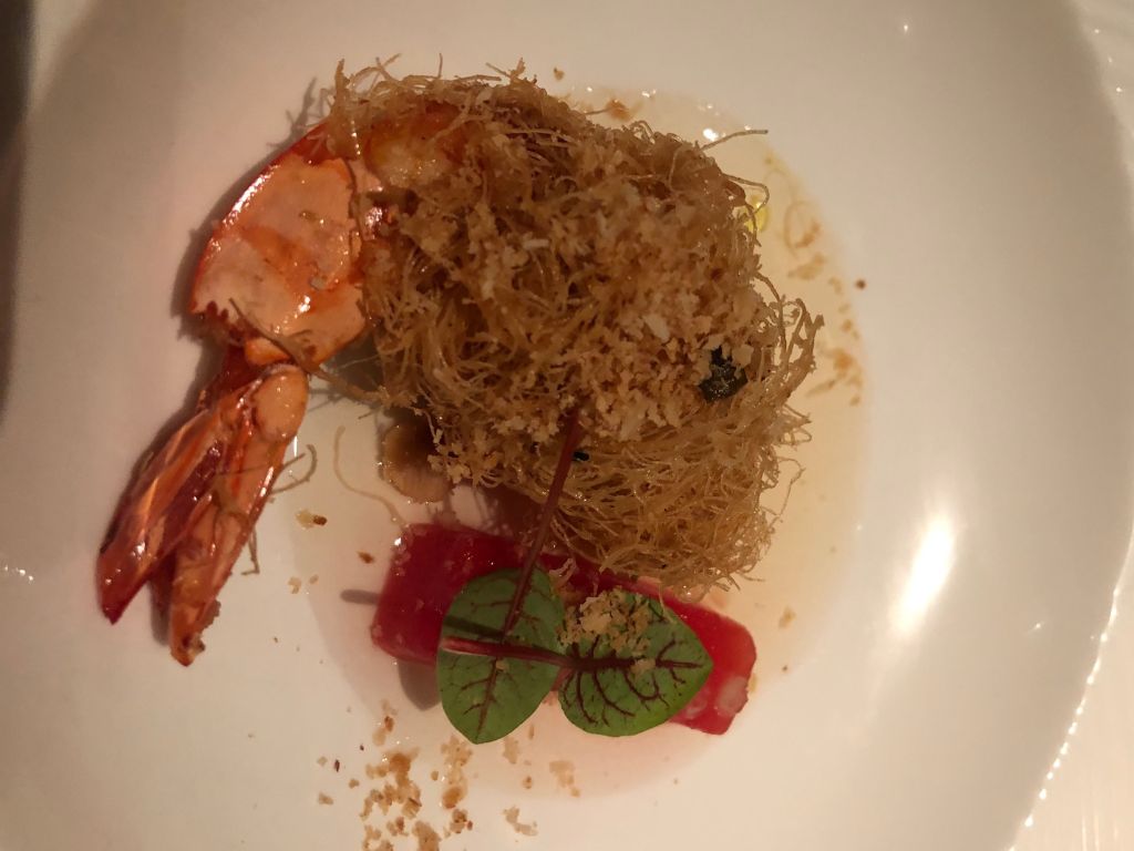 Saatnya chef George ‘menyapa’ lidah para tamu yang hadir dengan Prawn Kataifi. Chef George menyajikan langsung ke setiap meja, lalu menuangkan air semangka disajian prawn toast tarama.